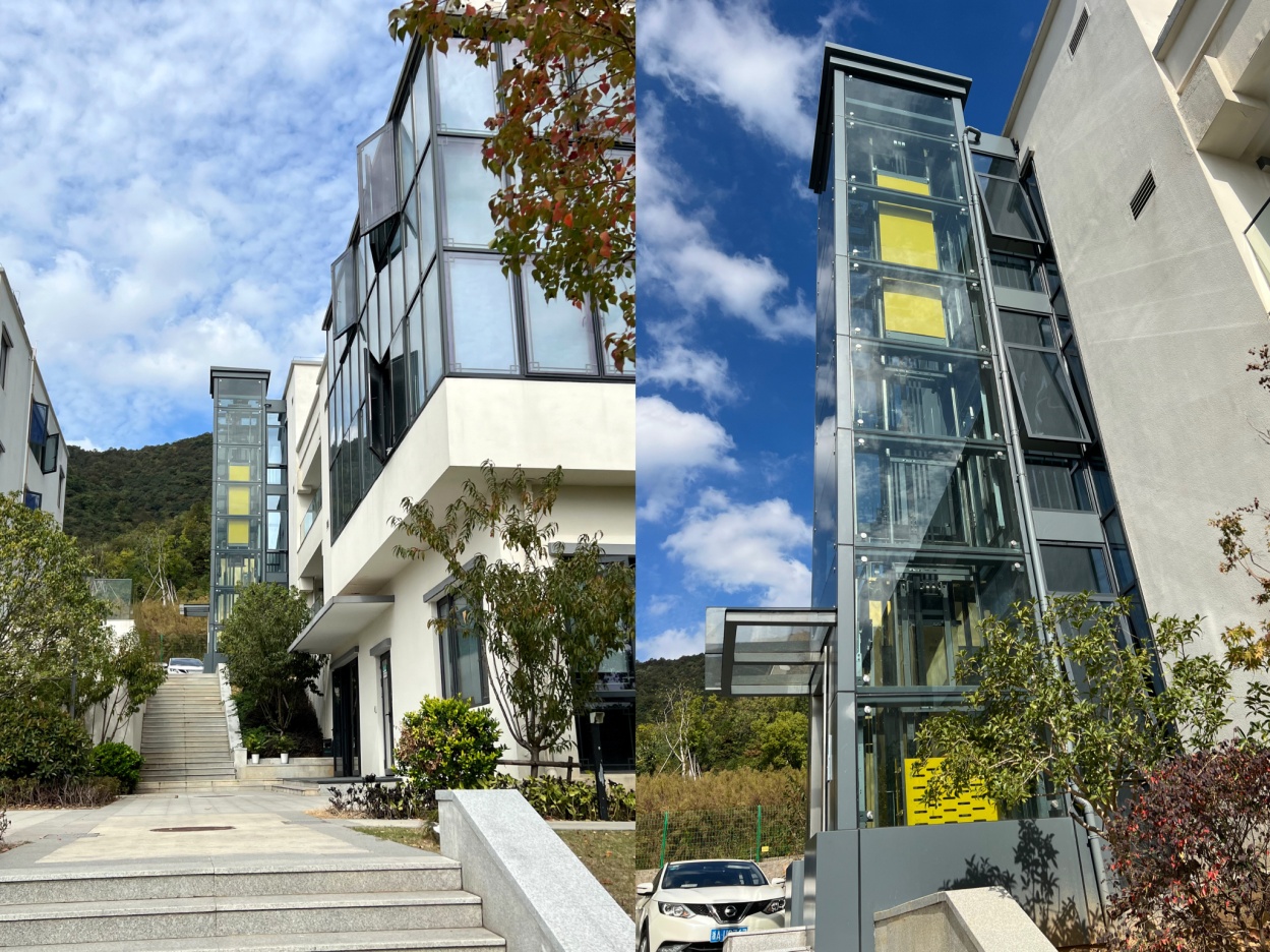 2021年3月投運的皋亭山液化氣儲配站,位于皋亭山風景區,占地面積3.1萬平方,液化氣儲存規模1500立方米,最大日灌裝規模達到140噸,于2020年4月開工建設,是杭州首家花園式液化石油氣儲配站。為切實改善員工工作環境,提升員工幸福感、獲得感,集團積極推進儲配站加裝電梯項目,由集團建設發展部牽頭,多次組織相關單位察看現場及選址、方案討論,最終確定在儲配站3#樓西側加裝觀光電梯,并于2022年5月開工建設,歷時3個月的時間,經過地下管線遷改、基礎澆注、井架吊裝、電梯設備、轎廂安裝及調試等環節,于8月通過浙江省特種設備檢測研究院檢測取得特種設備使用證,正式完成電梯加裝。
