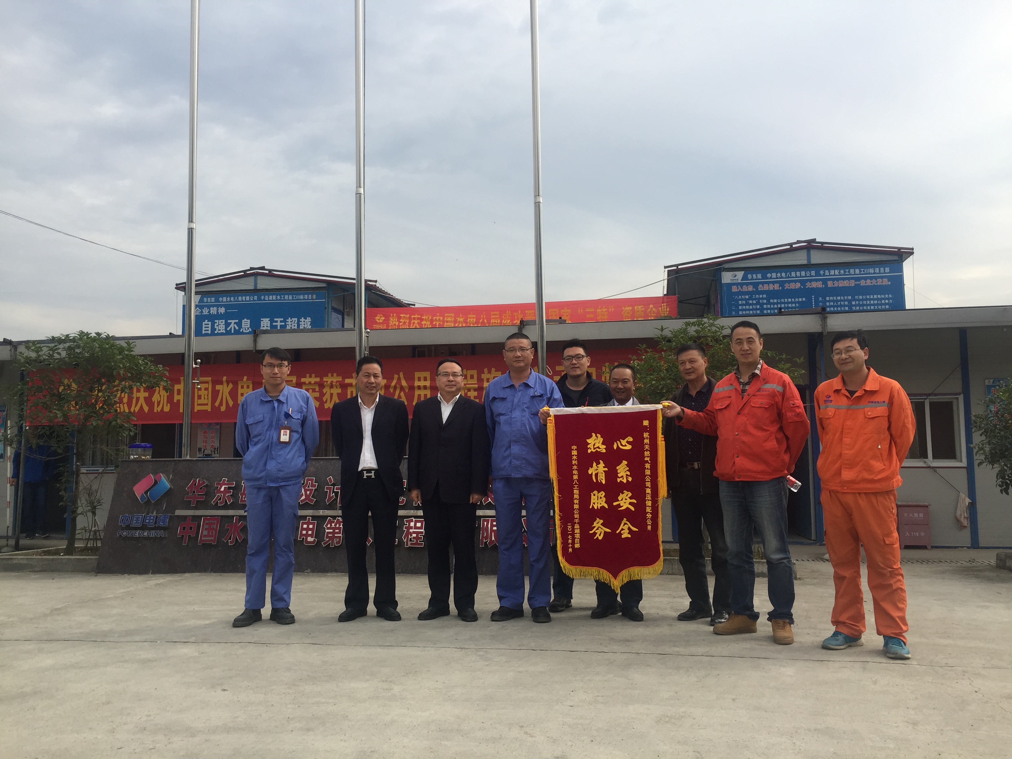 11月6日上午,中國水利水電第八工程局千島湖項(xiàng)目部向杭天高壓儲(chǔ)配分公司送上繡著“心系安全,熱情服務(wù)”的錦旗,并代表業(yè)主方——杭州市千島湖原水股份有限公司,對(duì)公司巡檢監(jiān)護(hù)人員在千島湖飲水工程施工期間的積極配合和辛勤付出表示衷心感謝。