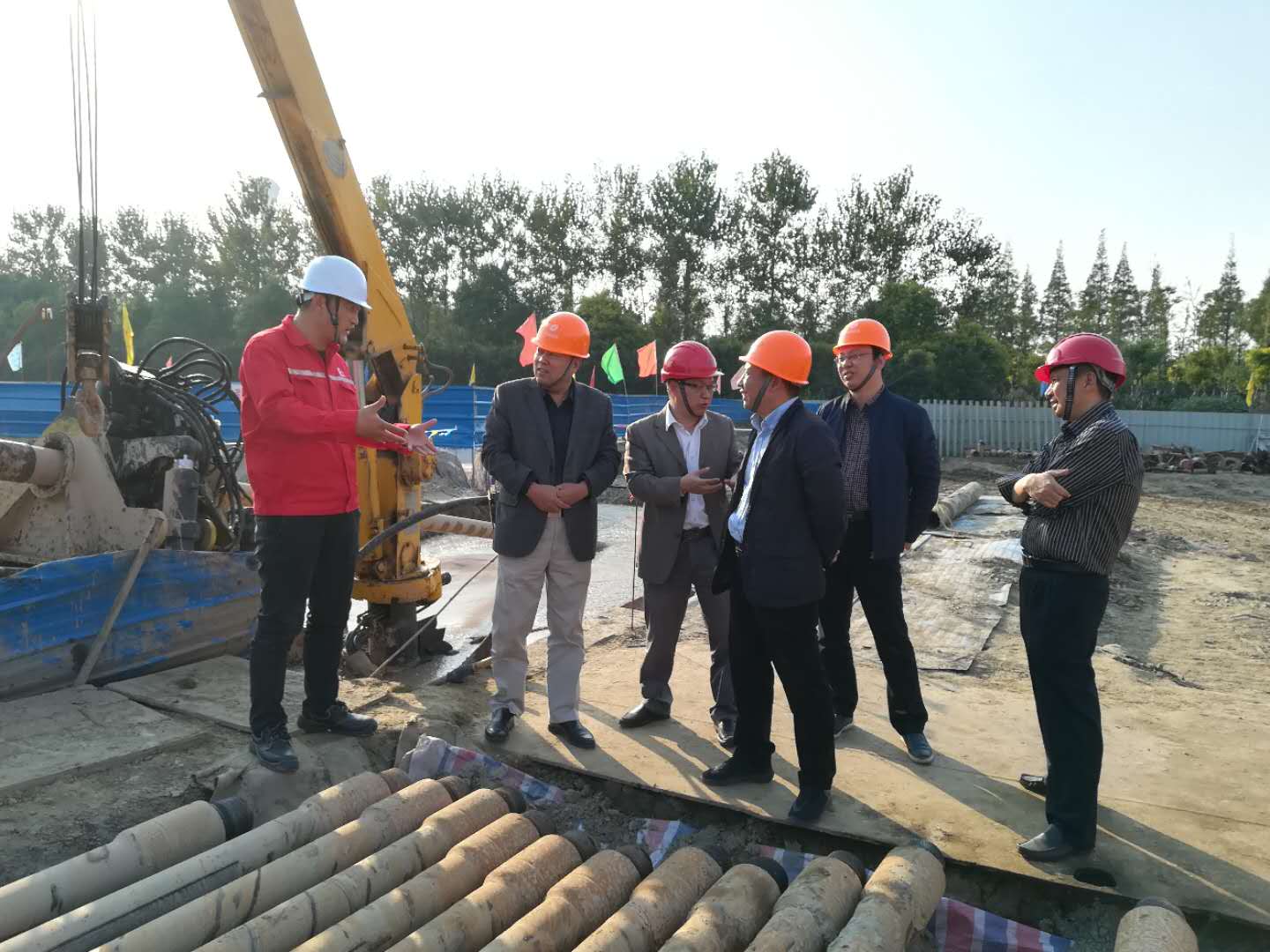 吳副總一行實(shí)地查看了S6過江段入土點(diǎn)作業(yè)現(xiàn)場(chǎng)、江東段組焊工地以及中石油、江漢油建項(xiàng)目部駐地。在聽取工程概況、施工進(jìn)度、計(jì)劃完成時(shí)間、施工中遇到的阻擾和采取的措施等情況匯報(bào)后,吳副總首先對(duì)杭燃集團(tuán)、杭天公司的燃?xì)飧邏汗艿拦こ炭傮w推進(jìn)情況表示肯定,尤其是面對(duì)困難不等不靠、主動(dòng)出擊的精神和做法值得發(fā)揚(yáng);其次要求狠抓施工進(jìn)度和質(zhì)量,充分發(fā)揮施工單位的技術(shù)優(yōu)勢(shì),合理搶抓工期,確保S6工程按期完工;第三要求根據(jù)城投集團(tuán)“奮戰(zhàn)60天,實(shí)現(xiàn)新突破”的部署,圍繞年度工程建設(shè)目標(biāo),不負(fù)重任,砥礪前行,全力沖刺,高度重視施工安全,確保完成全年工程施工任務(wù)。