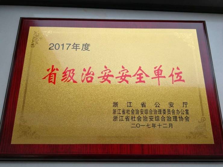 近日,杭天公司被省公安廳、省社會治安綜合治理委員會辦公室、省社會治安綜合治理協會聯合授予2017年度“省級治安安全單位”榮譽稱號。