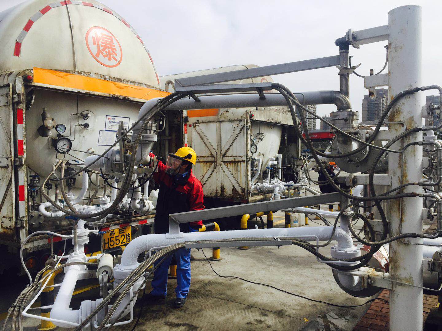隨著天氣的轉(zhuǎn)暖,節(jié)后冬季保供壓力逐漸降低,分公司搶抓北方供暖尚未結(jié)束、LNG價格尚未大幅回落的有利時機(jī),抓緊開展LNG對外銷售工作。分公司領(lǐng)導(dǎo)對此次外供裝車作業(yè)十分重視,明確現(xiàn)場各項(xiàng)安全防控措施和作業(yè)要求。各科室各司其職,團(tuán)結(jié)協(xié)作,生產(chǎn)安全科督促完成危險作業(yè)許可證審批,安排專職安全員全程監(jiān)護(hù);經(jīng)營發(fā)展科及時將槽車駕駛員、車輛、進(jìn)站時間等信息及時以微信形式告知運(yùn)行科;輸配科安排維修人員隨時應(yīng)對裝車作業(yè)可能產(chǎn)生的泄漏處理;東部站運(yùn)行人員按照作業(yè)規(guī)程,規(guī)范操作,現(xiàn)場人員與中控室緊密配合,在認(rèn)真做好槽車檢查和記錄、裝車現(xiàn)場動態(tài)數(shù)據(jù)監(jiān)測和記錄等工作的同時,嚴(yán)格執(zhí)行操作指令,確保各項(xiàng)工藝參數(shù)符合要求。