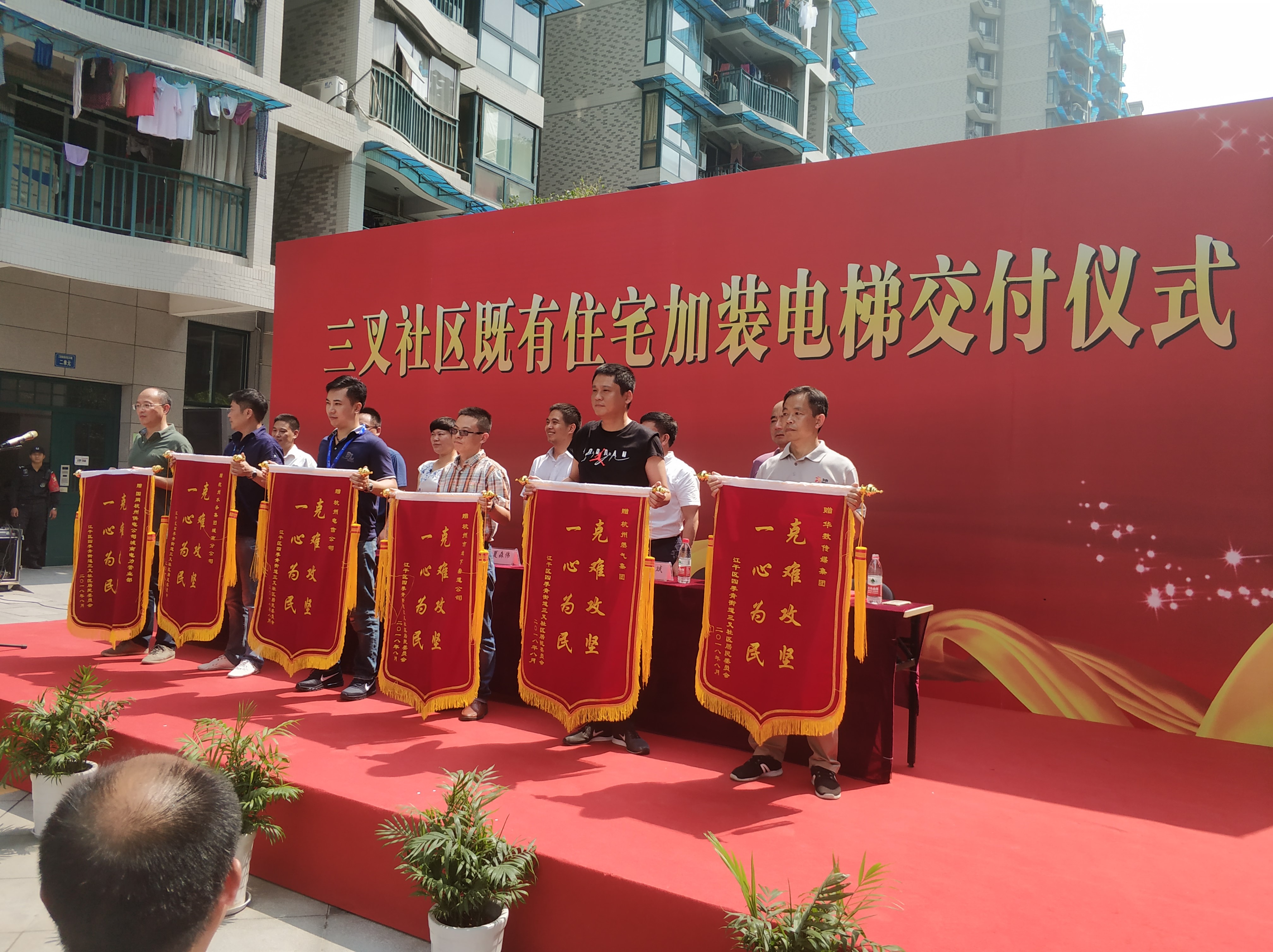 8月10日,三叉社區(qū)居委會舉行了既有住宅加裝電梯交付儀式,并向公司送上寫有“克難攻堅 一心為民”的錦旗,以感謝公司在加裝電梯期間的積極配合和辛勤付出。
