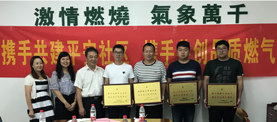 會上,分公司向社區(qū)頒發(fā)了“攜手共建平安社區(qū) 攜手共創(chuàng)品質(zhì)燃?xì)狻迸曝遥S后邀請參會代表參觀公司綠色之旅——濱江LNG應(yīng)急氣源站。