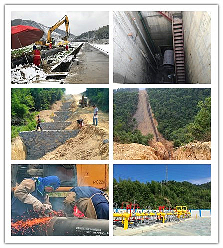該工程雖總長度不長,但90%為山體段施工,山高坡陡,施工期間一遇下雨,山體濕滑,挖機無法在山坡上行走,施工難度極大。穿越工程其中120米需頂管穿越清渚溪和公路安欽線,沉井深度達11米,地質條件為巖石,施工難度和施工風險大。因山體連續,山體間沒有進場道路,只能使用挖掘機在山坡上接力完成管材運輸,最遠時鋼管需翻越四座山,運輸距離達1800多米,最多時有四臺挖機接力運輸。在集團、杭天公司的領導下,各參建單位通力合作,工程建設者們克服重重困難,戰風雪、頂烈日、爬山坡,積極推進前期協調,抓好現場施工管理,攻堅克難,歷時9個月完成全線施工,同步完成安仁閥室的建設,管道天然氣成功挺進建德。