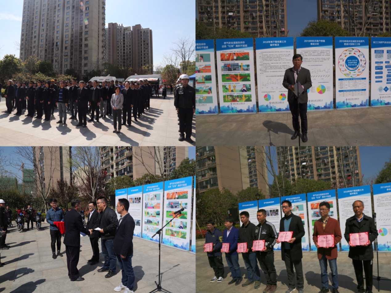 4月1日上午,杭天公司在錦文雅苑小區“4+X”服務現場召開“燃氣安全隱患有獎舉報”新聞發布會。市城管局直屬一大隊、市公用事業監管中心、杭燃集團綜合管理部、市地下管道業協會相關領導受邀出席。杭天公司總經理沈劍平、黨委副書記趙偉兒,公司各部室、分公司負責人,特勤隊、巡檢、4+X服務等一線工人;以及來自浙江新聞頻道、杭州一臺、杭州二臺、杭州日報、都市快報、杭州網等7家新聞媒體共計80余人參加。本次發布會由HSSE部經理王斌主持,副總經理趙國慶做新聞發布。