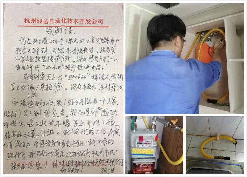 匠行見精神,沈堅負責的工作態度令用戶深受感動,8月10日一早就送來了表揚信表示了自己的感激之情。信中寫到:我被他的工作態度所感動,希望領導多多表揚在一線工作的師傅們,同時也感謝杭州天然氣有限公司的領導。用戶的贊揚便是對我們工作的肯定,服務發展公司仍將不忘初心、牢記使命,踐行“為城為民”的服務理念,用有溫度的服務讓每位燃氣用戶享受品質綠色生活。