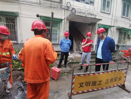 該小區前期正在進行雨污水改造,得知消息后集團黨委副書記、總經理朱琴君立即組織杭天相關部門前往實地查看,明確燃氣地下管線跟進翻建。管網輸配分公司積極落實,多次到現場與社區對接,綜合小區內交通擁擠、老年人居多等因素,在充分聽取居民建議后,決定采用分段施工方式,并對路障圍護等安全文明施工措施進行重點布置,同時協調好小區道路部分機械配合人工開挖及綠化部分的人工開挖相關工作,盡量避免二次開挖。9月4日,施工單位進場施工,分公司緊盯施工安全、質量和進度,提前三日張貼停氣公告,按計劃推進各項施工步驟。經過一個月的不懈努力,至10月14日工程順利完工。施工期間,杭天副總經理鄭基鵬到現場指導,對用電安全、埋深等工程建設現場管理“七個一”要求落實情況進行檢查和督促。