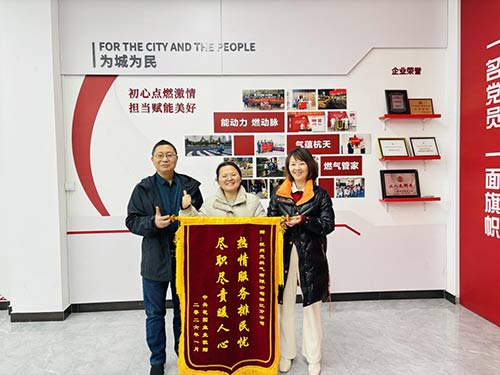 2026年的第一個工作日,心懷感激的高女士專程來到濱江分公司,將一面寫有“熱情服務排民憂,盡職盡責暖人心”的錦旗送到工作人員手中。黨支部書記韓國強接過錦旗,誠摯地說:“用戶的信任是我們前進的最大動力。保障每一位居民的用氣安全,始終是我們工作的重中之重。”這番話語,也讓在場所有人更加堅定了“為民服務”的初心。