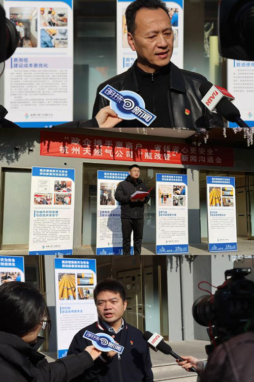 12月31日上午,管網建設分公司在大關街道沿街商鋪現場召開“政企攜手惠商戶,省錢省心更安全”為主題的“瓶改管”新聞溝通會,杭州一臺、二臺等媒體到場報道。分公司副書記、副經理金犁做新聞發布。