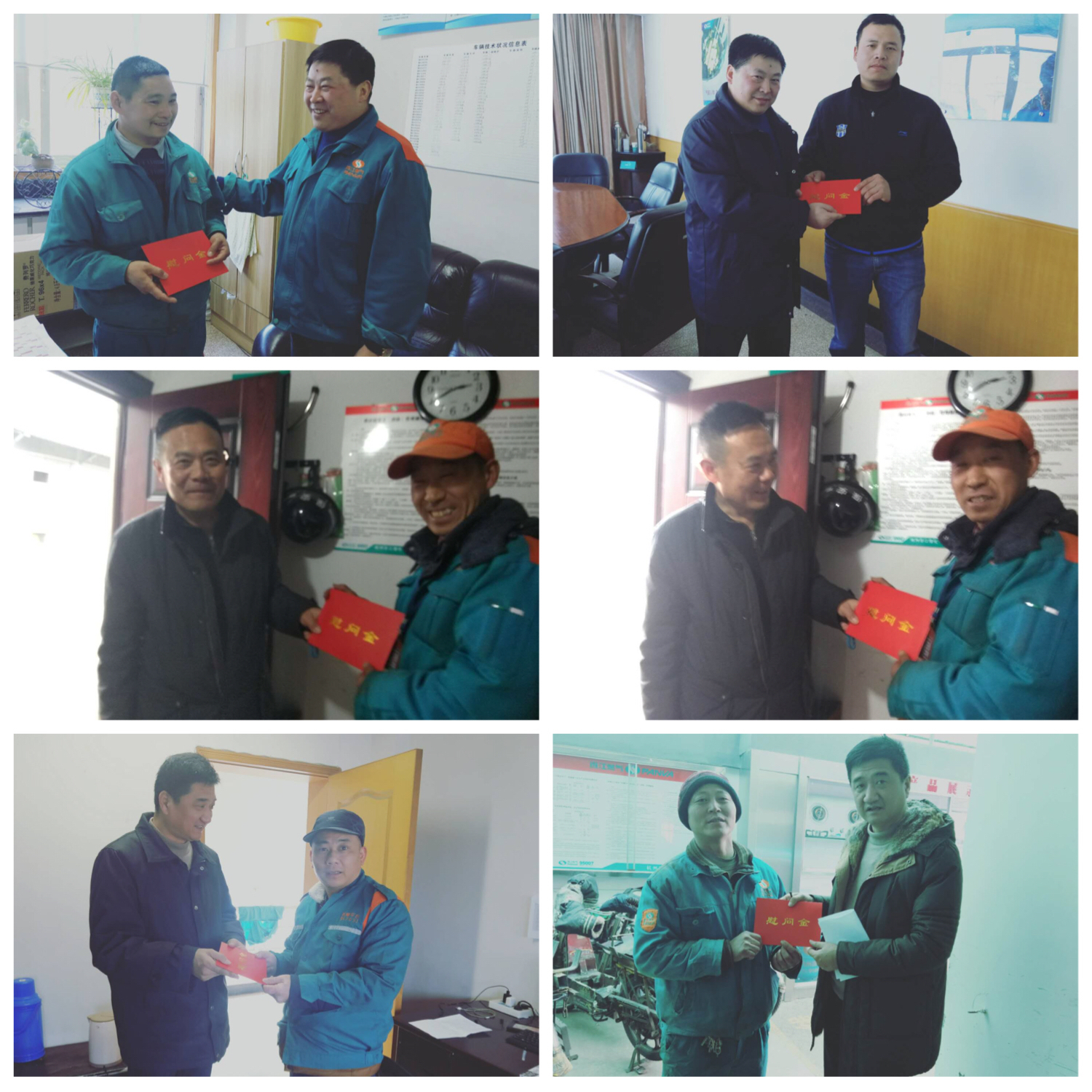 2月9日,杭州百江黨政工聯(lián)合,由經(jīng)營班子成員帶隊開展“送溫暖”活動,分組對杭州百江物流部押運員徐志忠、蘇海兵、客服中心搶修人員何海華、零售部配送員袁要兵、張吉友等5名基層困難員工進行慰問,并向他們送去新春的祝福。