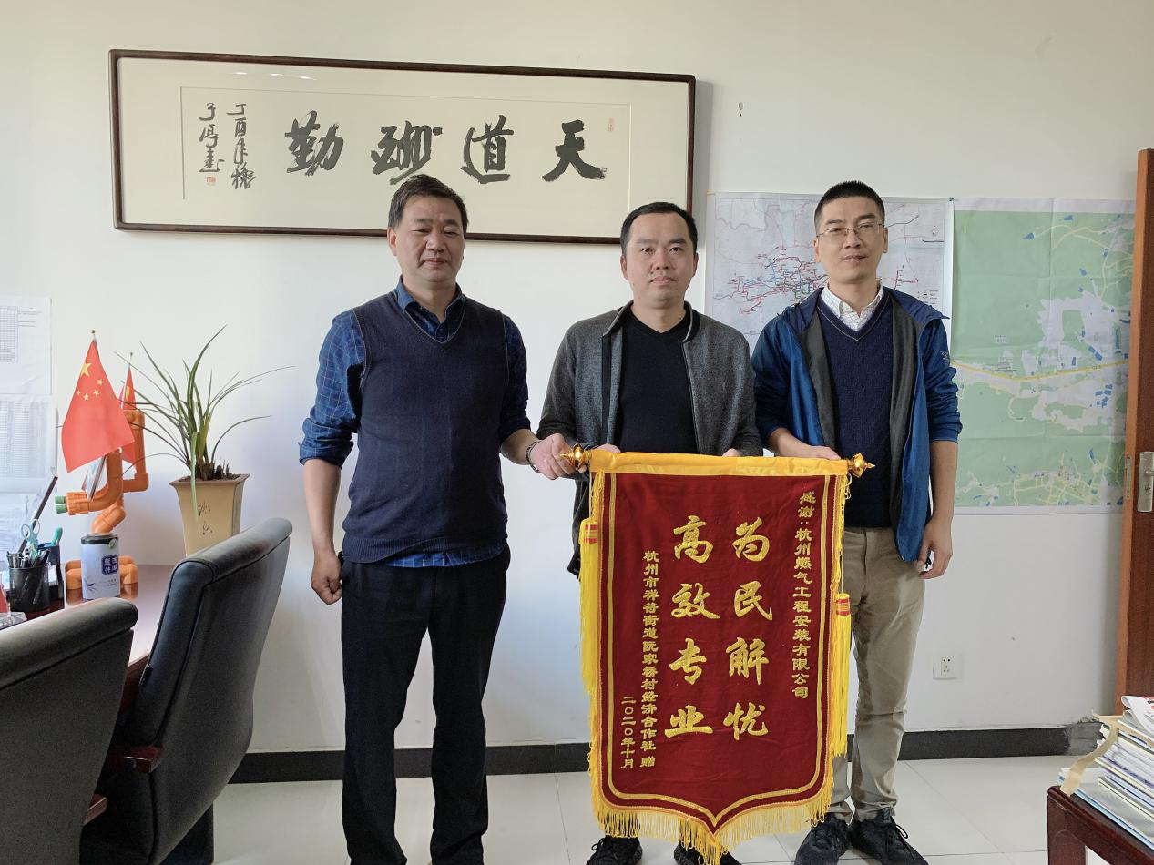 11月5日下午,杭州市拱墅區祥符街道阮家橋社區主任張國中帶著錦旗“為民解憂,高效專業”專程趕來,對工程公司項目二部的施工服務表示感謝,副總經理朱國軍代表公司感謝阮家橋社區對我們工作的支持和肯定。