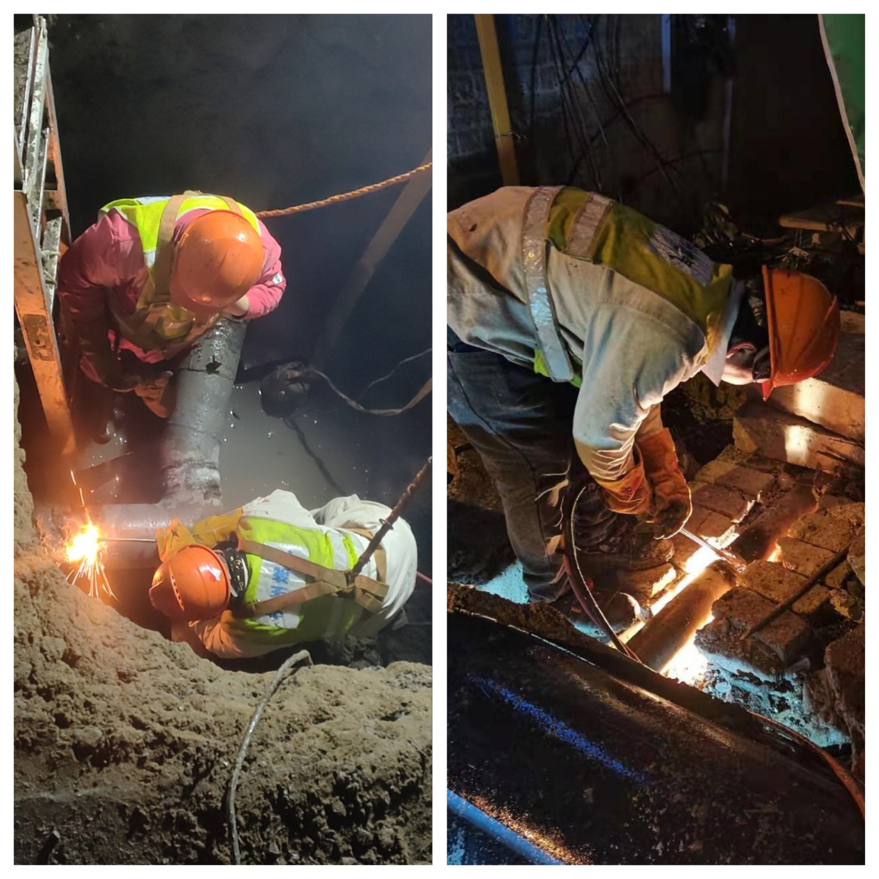 13日晚7時許,公司工程管理部副經(jīng)理范建強帶領(lǐng)大家開始整理滅火器、防爆燈、防爆風(fēng)機、呼吸機等設(shè)備、物資!暗蜏、雨雪,是這場寒潮給施工的一個考驗。身在生產(chǎn)一線,安全責(zé)任重大,除了馬不停蹄地工作,還要做好‘七個一’安全文明施工措施,一點馬虎不得!闭f完,他便督促施工班組落實安全技術(shù)交底,確保安全、技術(shù)可控。夜越來越深,氣溫直逼0℃,雨水也不斷拍打在施工人員身上,但惡劣的天氣絲毫沒有打亂大家工作的節(jié)奏,在杭天公司的協(xié)調(diào)指揮下,經(jīng)過五個多小時奮戰(zhàn),于12月14日凌晨1:46分圓滿完成地鐵5號線再行路站中壓永久管割接置換。