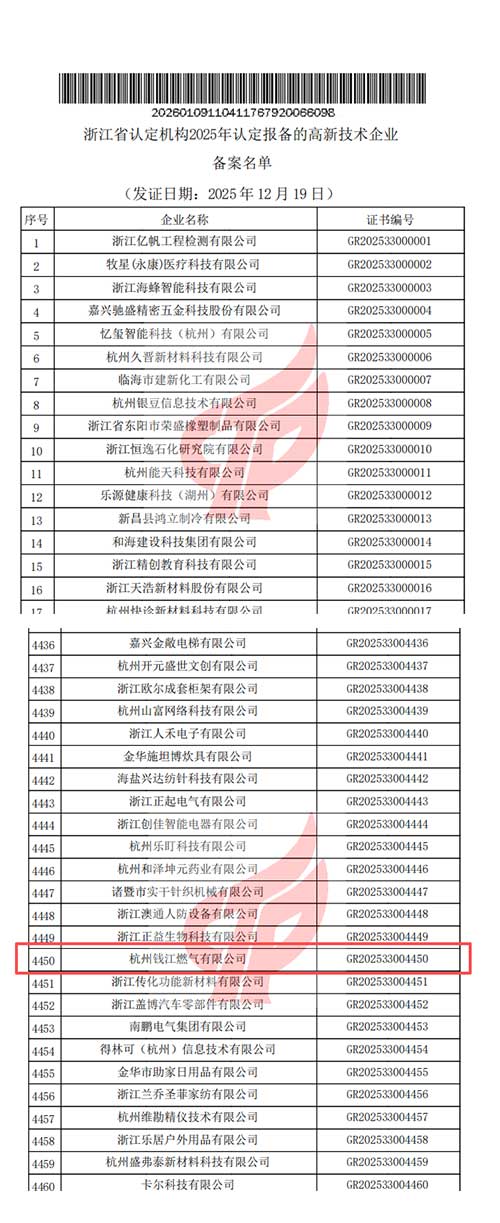 喜訊傳來!杭州錢江燃氣有限公司于2026年1月9日順利通過國家科技部、財政部、國家稅務總局的聯合認定,正式獲評“國家高新技術企業”(證書編號:GR202533004450),相關信息已通過全國高新技術企業認定管理工作領導小組辦公室備案公告。這標志著公司在科技創新、核心知識產權、成果轉化及科研管理等方面的綜合實力獲得國家權威認可,錢江公司成功躋身國家級高新技術企業行列,更是成為杭燃集團史上首家國高企業,為企業向現代化能源服務商轉型奠定堅實基礎。