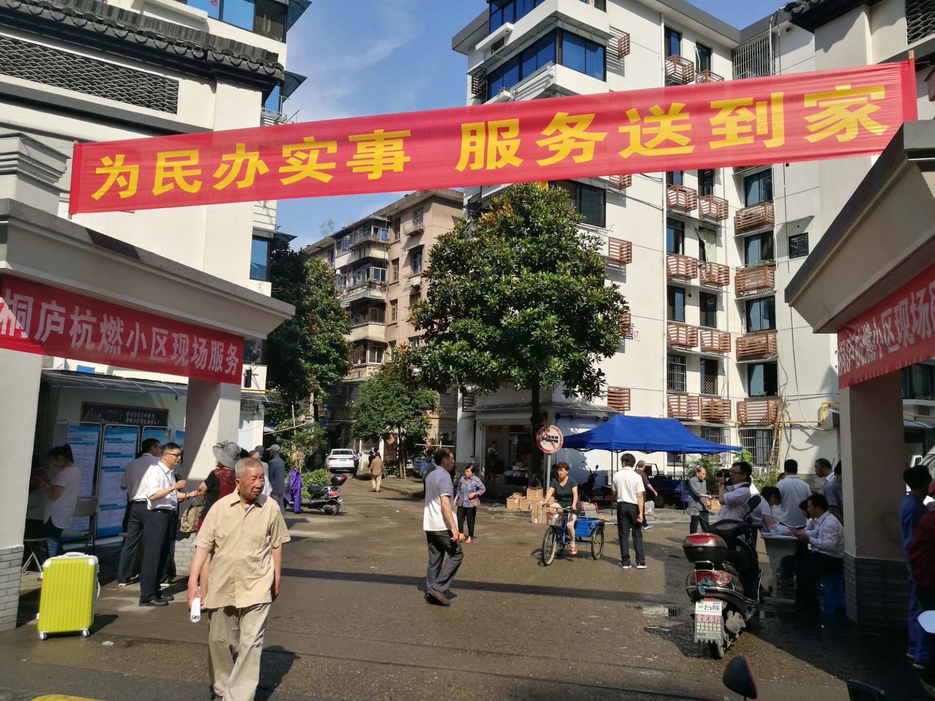 2017年,桐廬杭燃多次對該小區(qū)進行現(xiàn)場踏勘,根據(jù)現(xiàn)場實際情況合理,調(diào)整地下管位、調(diào)壓器位置,增加架空管工程量。6月4日,洋塘新村小區(qū)地下管順利通氣。6月5日,桐廬杭燃服務人員走進小區(qū)開展“最多跑一次,服務送到家”現(xiàn)場服務活動,現(xiàn)場辦理燃氣開通274戶,安裝、點火完成50戶,灶具銷售101臺。
