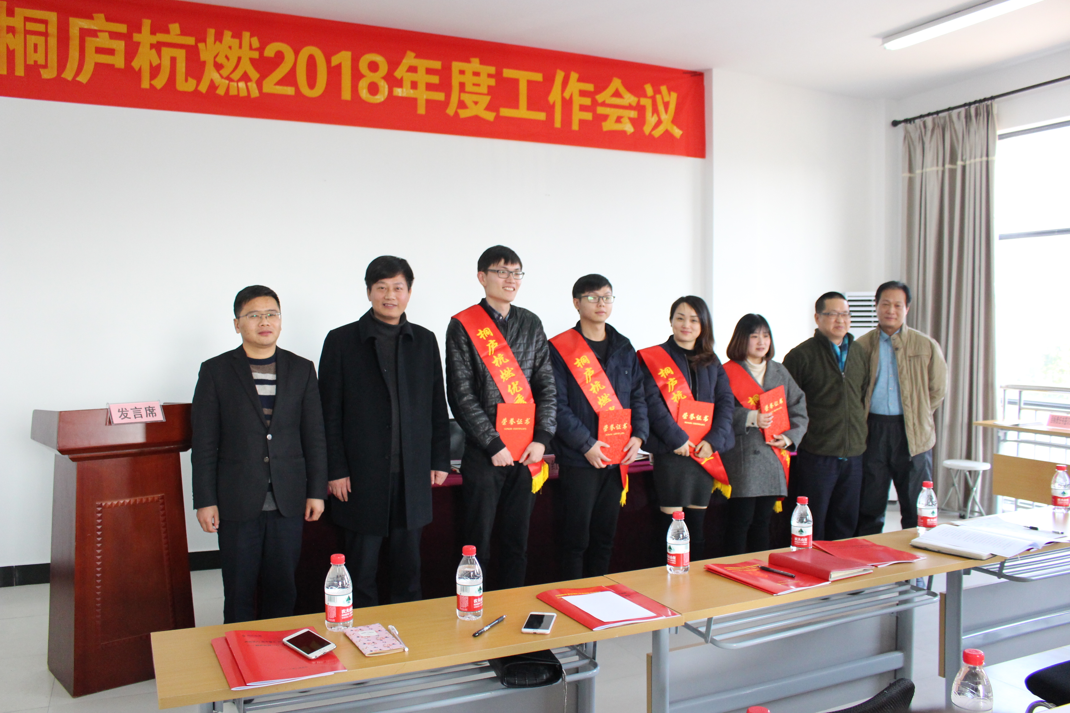 會上,俞紅偉總經理作題為《齊心協力,實干至上,攻堅克難,謀求發展》的工作報告,從2017“十個新突破”、存在的困難和問題方面對2017年桐廬杭燃各項指標完成情況以及2017年度所開展工作進行了闡述,同時提出2018年度公司經營目標,從“一個思想”、“五個實現”方面明確了2018年工作思路。公司總經理助理邵峰杰通報了2017年度各部室考核情況,并對桐廬杭燃2017年度優秀員工進行了通報表彰,集團公司副總經理王忠平和公司領導班子為優秀員工頒發榮譽證書。隨后,桐廬杭燃服務發展部和工程建設部負責人進行表態發言,就如何做好2018年建設和發展工作表明決心。接著,總經理俞紅偉與各部門負責人簽訂了2018年度目標責任書;副總經理孫斌傳達了集團公司2018年度工作報告,并對今冬明春工作進行了部署,保證春節期間各項生產工作有條不紊的開展。最后,集團副總經理王忠平對桐廬杭燃2018年工作提出了三點建議:一是肯定成績,認清形勢;二是發揮優勢,搶占發展;三是做強主業,做實副業,拓展新業。王忠平副總經理還帶頭講黨課,了“十九大”精神,要求在新時代下,要有“新擔當、新作為、新思路”。在會議召開之前,集團副總經理對節前安全進行檢查。