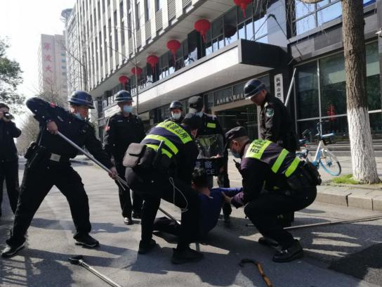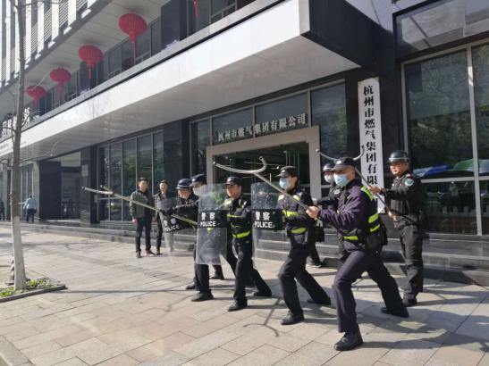 3月2日14:40分,燃氣大廈一樓大廳門前,1名手持長棍的可疑男子企圖進入大廳,執(zhí)勤保安上前詢問、并要求測體溫和身份登記。該男子突然拔出“兇器”企圖強闖。值勤保安立即利用身邊的盾牌、鋼叉與“不法分子”周旋對峙,分公司應(yīng)急預(yù)案隨即啟動,物管部主任沈梁華、安全管理員王亮等聞訊立即趕到大廳……在大廈增援保安、西溪派出所110巡邏民警共同努力下,最終成功將“暴徒”制服。
