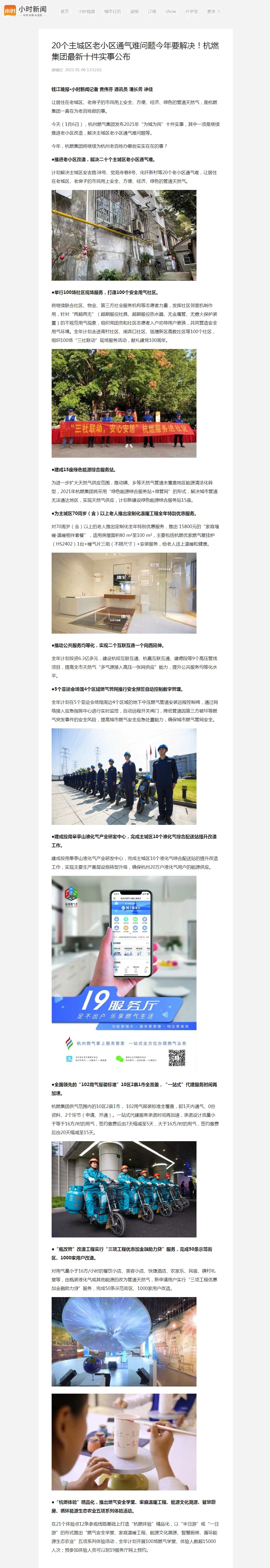 計劃解決主城區安吉路38號、覺苑寺巷8號、化纖新村等20個老小區通氣難,讓居住在老城區、老房子的市民用上安全、方便、經濟、綠色的管道天然氣。