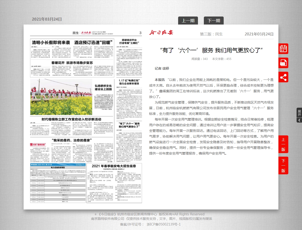為規范燃氣安全管理,保障供氣安全,提升服務品質,不斷推動我區天然氣市場發展,日前,杭州臨安杭燃燃氣有限公司發布非居民用戶安全用氣管理“六個一”服務標準,全力提升服務效能、優化營商環境。