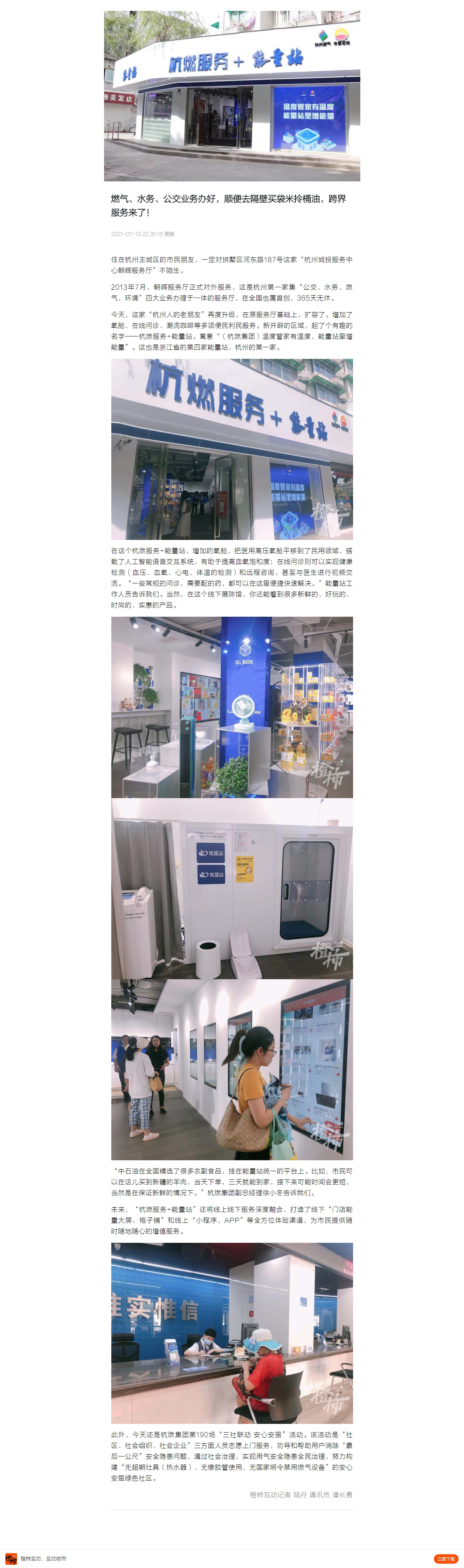 未來,“杭燃服務+能量站”還將線上線下服務深度融合,打造了線下“門店能量大屏、格子鋪”和線上“小程序、APP”等全方位體驗渠道,為市民提供隨時隨地隨心的增值服務。