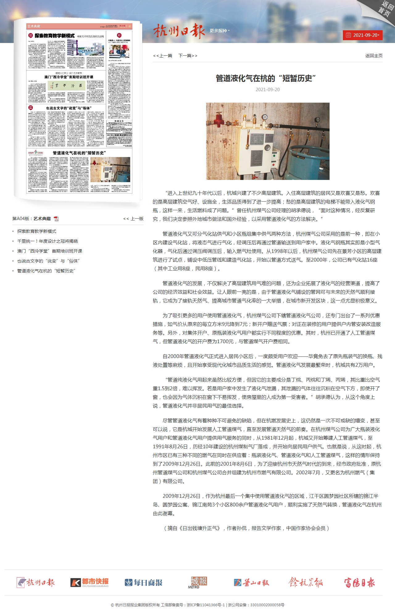 【杭州日報之“故事燃氣 紅色印記”】管道液化氣在杭的“短暫歷史”