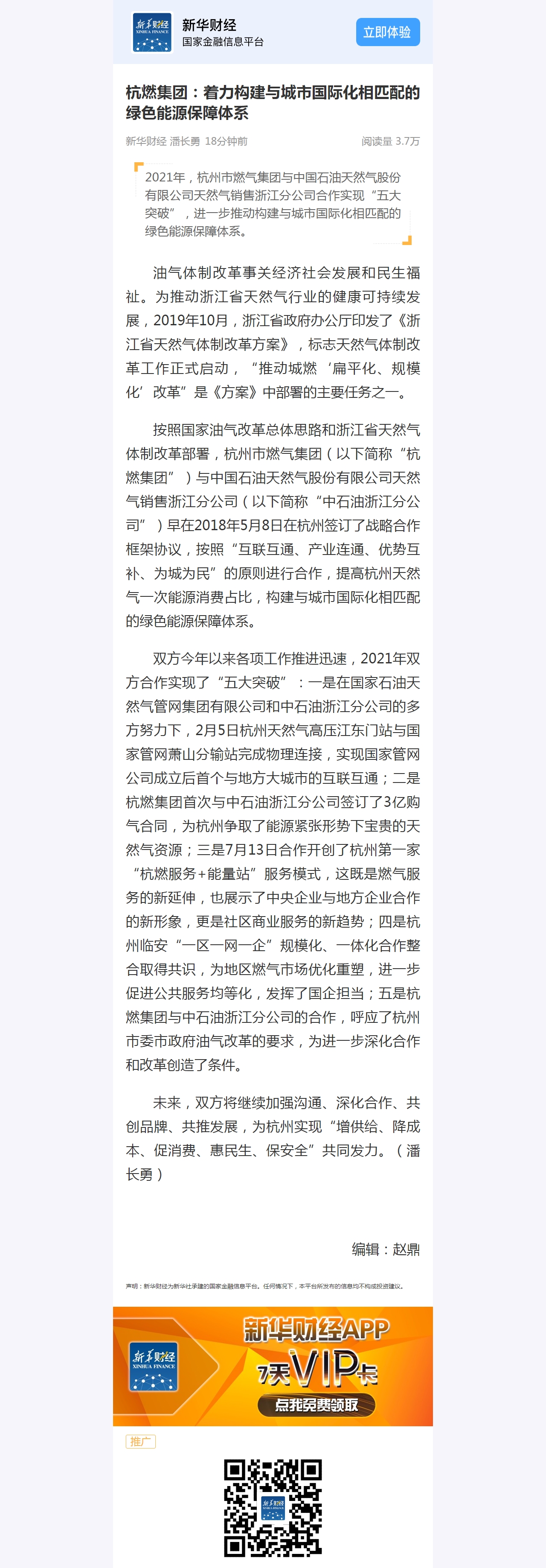 雙方今年以來(lái)各項(xiàng)工作推進(jìn)迅速,2021年雙方合作實(shí)現(xiàn)了“五大突破”:一是在國(guó)家石油天然氣管網(wǎng)集團(tuán)有限公司和中石油浙江分公司的多方努力下,2月5日杭州天然氣高壓江東門(mén)站與國(guó)家管網(wǎng)蕭山分輸站完成物理連接,實(shí)現(xiàn)國(guó)家管網(wǎng)公司成立后首個(gè)與地方大城市的互聯(lián)互通;二是杭燃集團(tuán)首次與中石油浙江分公司簽訂了3億購(gòu)氣合同,為杭州爭(zhēng)取了能源緊張形勢(shì)下寶貴的天然氣資源;三是7月13日合作開(kāi)創(chuàng)了杭州第一家“杭燃服務(wù)+能量站”服務(wù)模式,這既是燃?xì)夥⻊?wù)的新延伸,也展示了中央企業(yè)與地方企業(yè)合作的新形象,更是社區(qū)商業(yè)服務(wù)的新趨勢(shì);四是杭州臨安“一區(qū)一網(wǎng)一企”規(guī)模化、一體化合作整合取得共識(shí),為地區(qū)燃?xì)馐袌?chǎng)優(yōu)化重塑,進(jìn)一步促進(jìn)公共服務(wù)均等化,發(fā)揮了國(guó)企擔(dān)當(dāng);五是杭燃集團(tuán)與中石油浙江分公司的合作,呼應(yīng)了杭州市委市政府油氣改革的要求,為進(jìn)一步深化合作和改革創(chuàng)造了條件。
