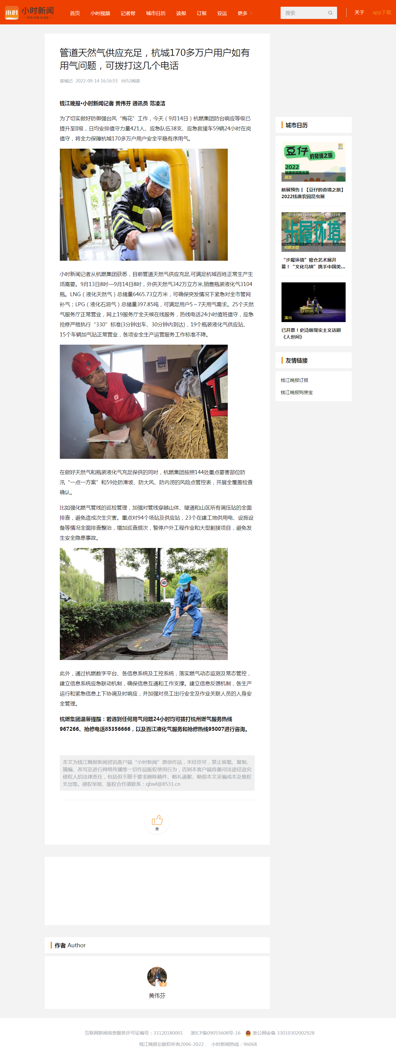 小時新聞記者從杭燃集團(tuán)獲悉,目前管道天然氣供應(yīng)充足,可滿足杭城百姓正常生產(chǎn)生活需要。9月13日8時—9月14日8時,外供天然氣342萬立方米,銷售瓶裝液化氣3104瓶。LNG(液化天然氣)總儲量6465.73立方米,可確保突發(fā)情況下緊急對全市管網(wǎng)補氣;LPG(液化石油氣)總儲量397.85噸,可滿足用戶5~7天用氣需求。25個天然氣服務(wù)廳正常營業(yè),網(wǎng)上19服務(wù)廳全天候在線服務(wù),熱線電話24小時值班值守,應(yīng)急搶修嚴(yán)格執(zhí)行“330”標(biāo)準(zhǔn)(3分鐘出車、30分鐘內(nèi)到達(dá)),19個瓶裝液化氣供應(yīng)站、15個車輛加氣站正常營業(yè),各項安全生產(chǎn)運營服務(wù)工作標(biāo)準(zhǔn)不降。