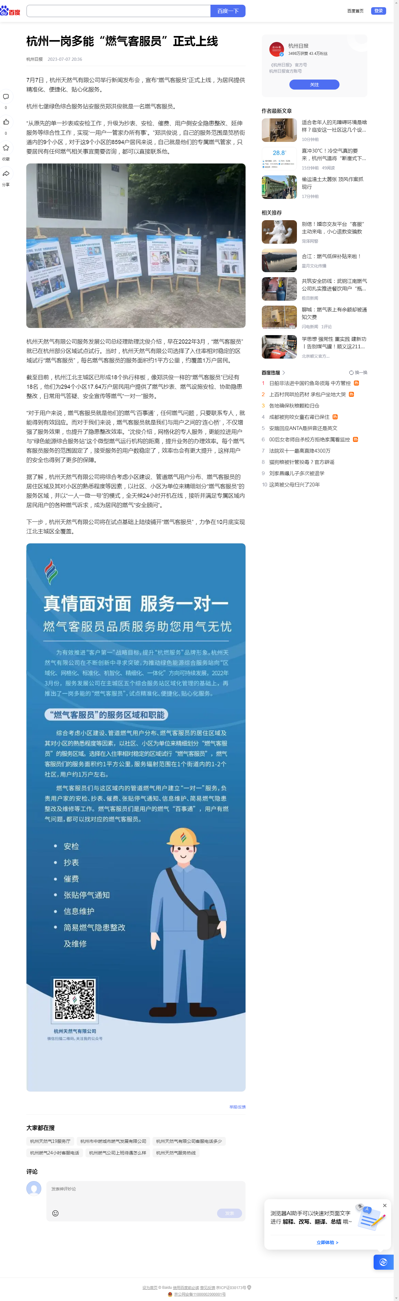 7月7日,杭州天然氣有限公司舉行新聞發布會,宣布“燃氣客服員”正式上線,為居民提供精準化、便捷化、貼心化服務。