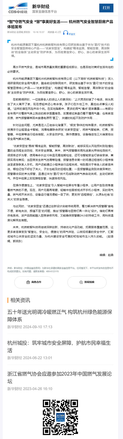 未來,杭燃數(shù)智科技將繼續(xù)深耕創(chuàng)新,持續(xù)優(yōu)化產(chǎn)品功能、拓展服務(wù)覆蓋范圍,讓更多家庭享受到“智慧化、安全化、便捷化”的用氣體驗,以微觀場景的安全守護(hù),匯聚成城市公共安全的堅實力量,為杭州建設(shè)安全可靠的韌性城市注入持久動能。(趙語嫣、郭奕彤)