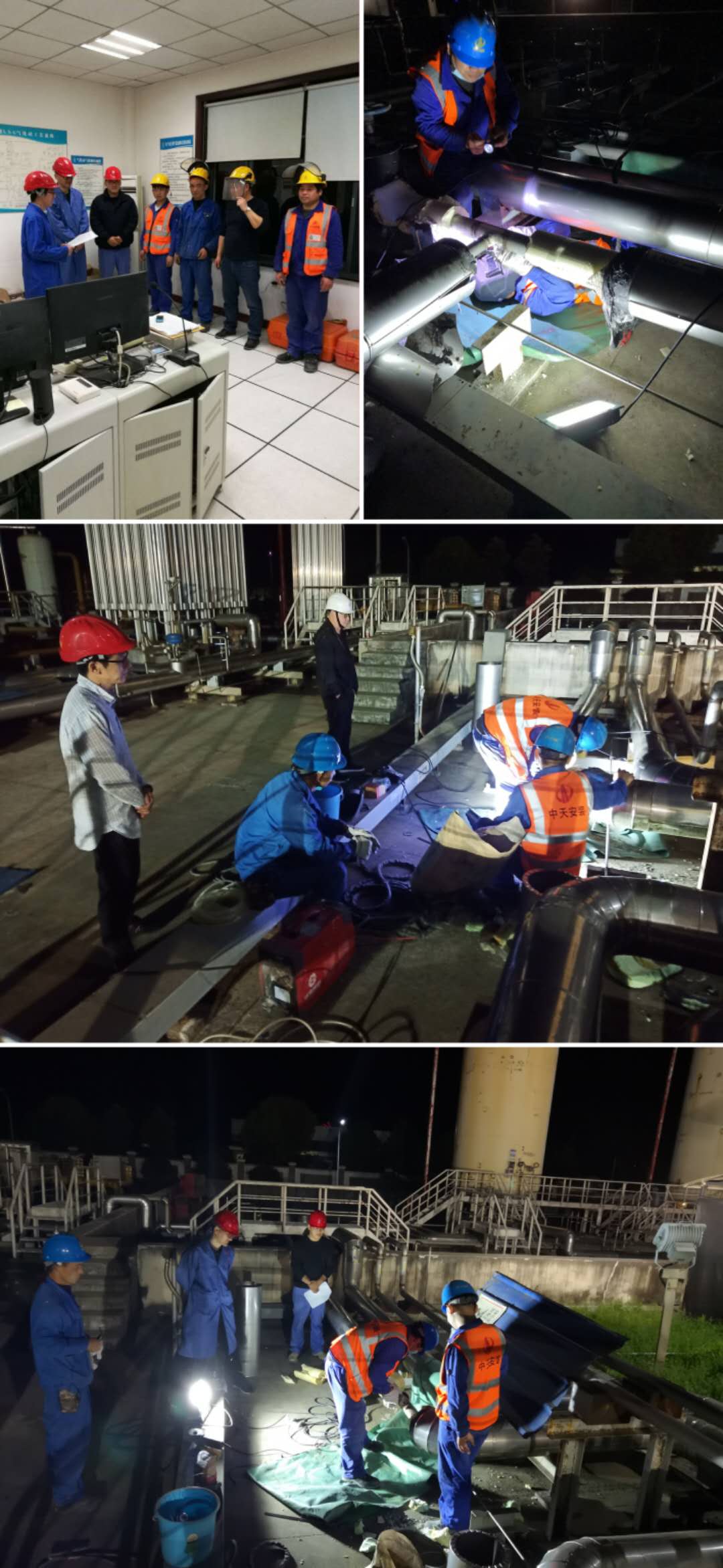 25日19時(shí)30分,修復(fù)作業(yè)準(zhǔn)時(shí)開(kāi)始,公司總經(jīng)理方國(guó)華和原施工單位項(xiàng)目負(fù)責(zé)人親臨現(xiàn)場(chǎng)指揮。公司與施工單位嚴(yán)格按照作業(yè)方案,在確定各項(xiàng)安全措施到位后,有序進(jìn)行放散、吹掃、割接和置換等一系列工作。經(jīng)輸配運(yùn)行人員和施工作業(yè)人員不畏辛苦,持續(xù)作戰(zhàn)六個(gè)多小時(shí),最終于26日凌晨2點(diǎn)順利完成兩處液相管焊點(diǎn)修復(fù),并經(jīng)第三方擴(kuò)探6處合格。隨后輸配運(yùn)行人員切換為L(zhǎng)NG供氣。