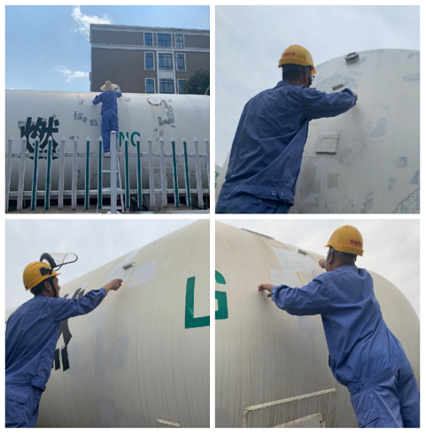 近期,建德公司壽昌加氣站的儲罐受到了“百般呵護”。繼8月份開展的儲罐清洗活動后,明顯可以看出儲罐上的油漆已有部分脫落,坑坑洼洼很影響美觀。雨天一過,趁著天氣晴好,來自于輸配運行部西端班組的青年志愿者們自行組成4人刷漆小分隊,在加氣站開展儲罐刷漆活動。