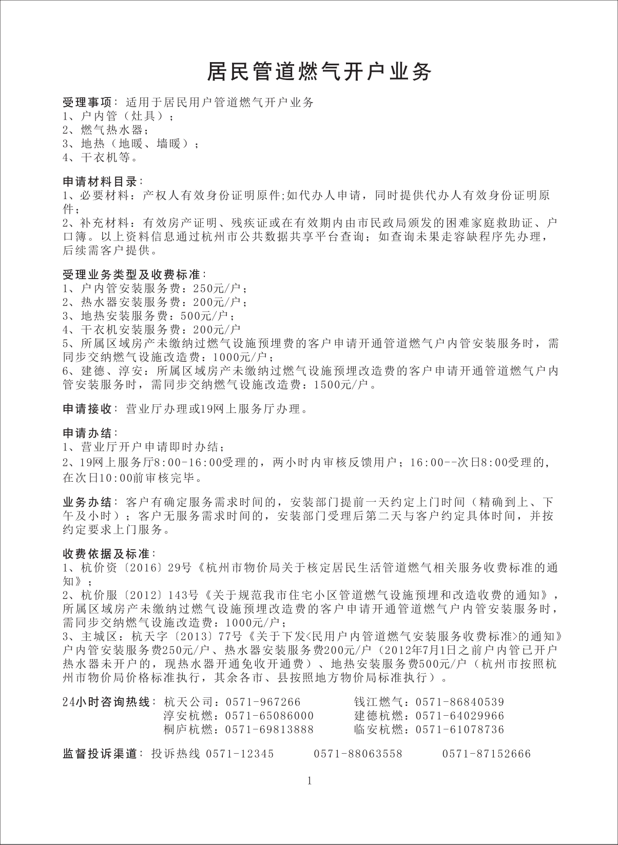 居民用戶管道燃?xì)忾_戶業(yè)務(wù) |