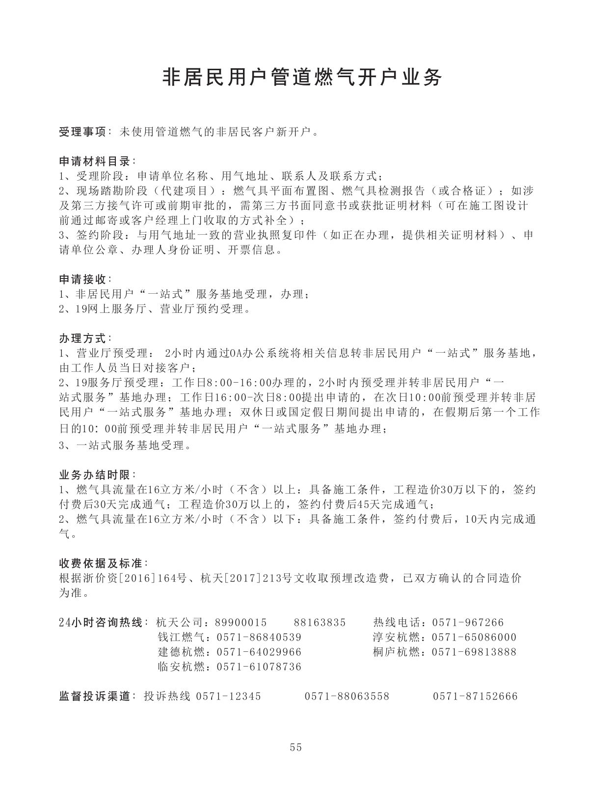 非居民用戶管道燃?xì)忾_戶業(yè)務(wù) |