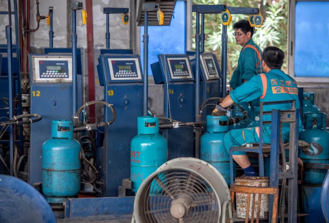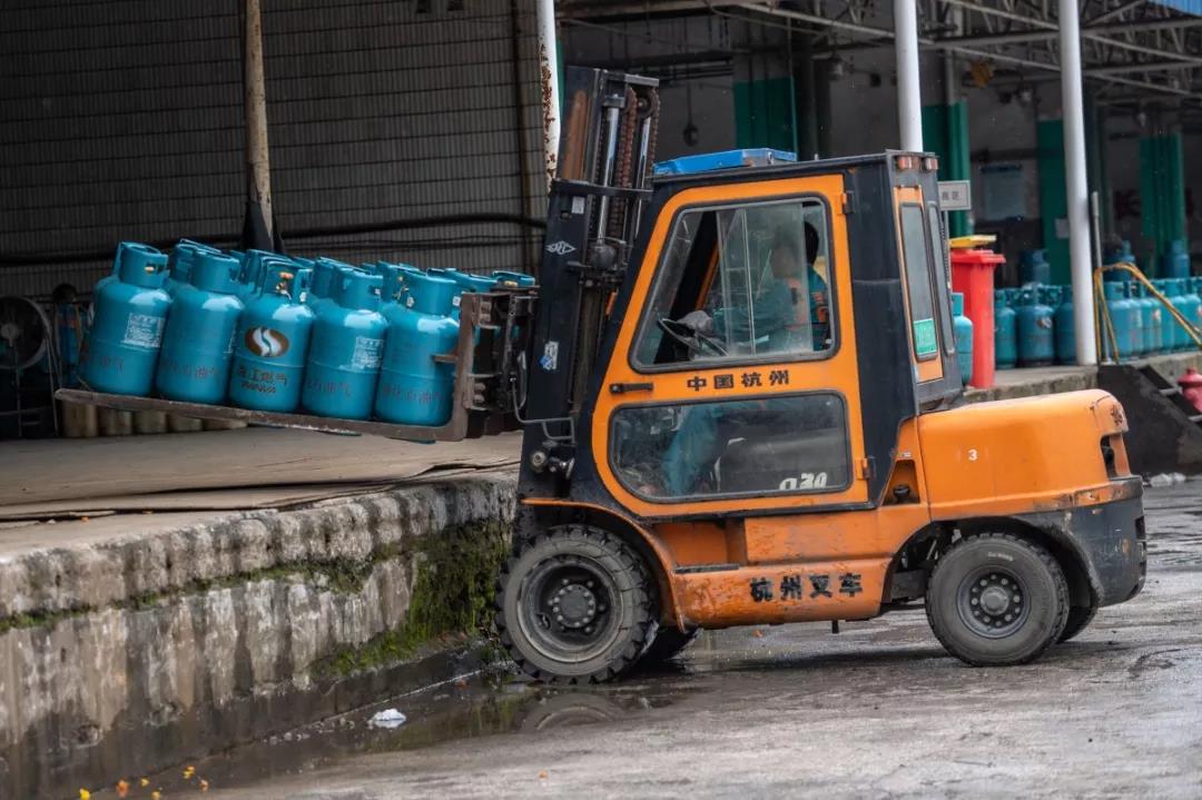 ▲瓶裝液化石油氣統(tǒng)一配送在運(yùn)輸“管家”的幫助下