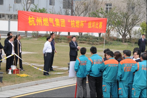 11月29日下午,沐浴著冬日的暖陽,(集團)公司首屆“杭燃杯”拔河比賽勝利開幕。本次比賽由(集團)公司工會主辦、后勤分公司協(xié)辦,來自集團12支代表隊參加比賽,(集團)公司黨委書記、董事長吳曉甦主持開幕式,黨委副書記、工會主席王進忠擔任組委會主任。經(jīng)過十五場激烈競逐,實力強大的百江公司代表隊一舉奪魁,營業(yè)分公司代表隊和工程安裝公司代表隊分別贏得第二、三名,輸配分公司、管網(wǎng)分公司、杭天公司分獲第四、五、六名。